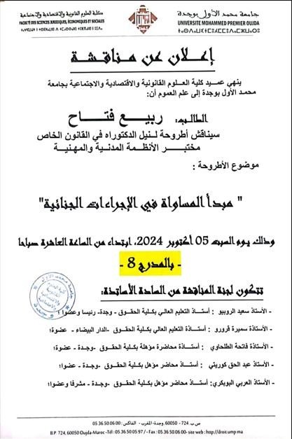 أطروحة جامعية تناقش مبدأ المساواة في الإجراءات الجنائية (تقرير عام)