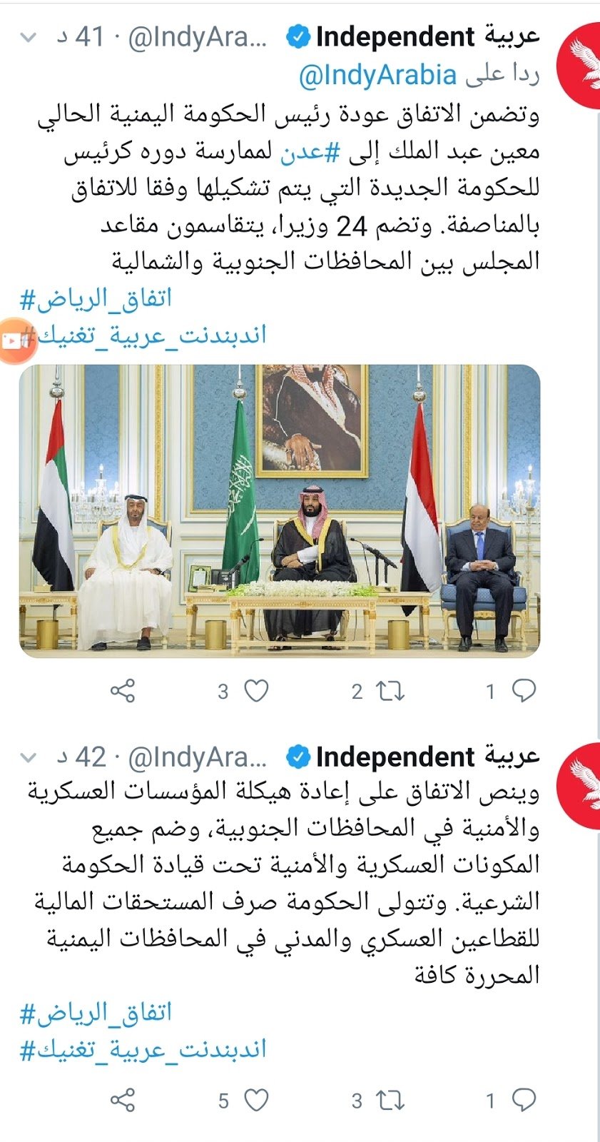 تم يومه الجمعة 10 يناير 2020 توقيع إتفاق الرياض بين الحكومة الشرعية والمجلس الانتقالي الجنوبي في اليمن بحضور ورعاية محمد بن سلمان و محمد بن زايد. فهل هذا الاتفاق مؤشر على قرب تسوية النزاع في اليمن؟ أم هروب من المستقنع؟.