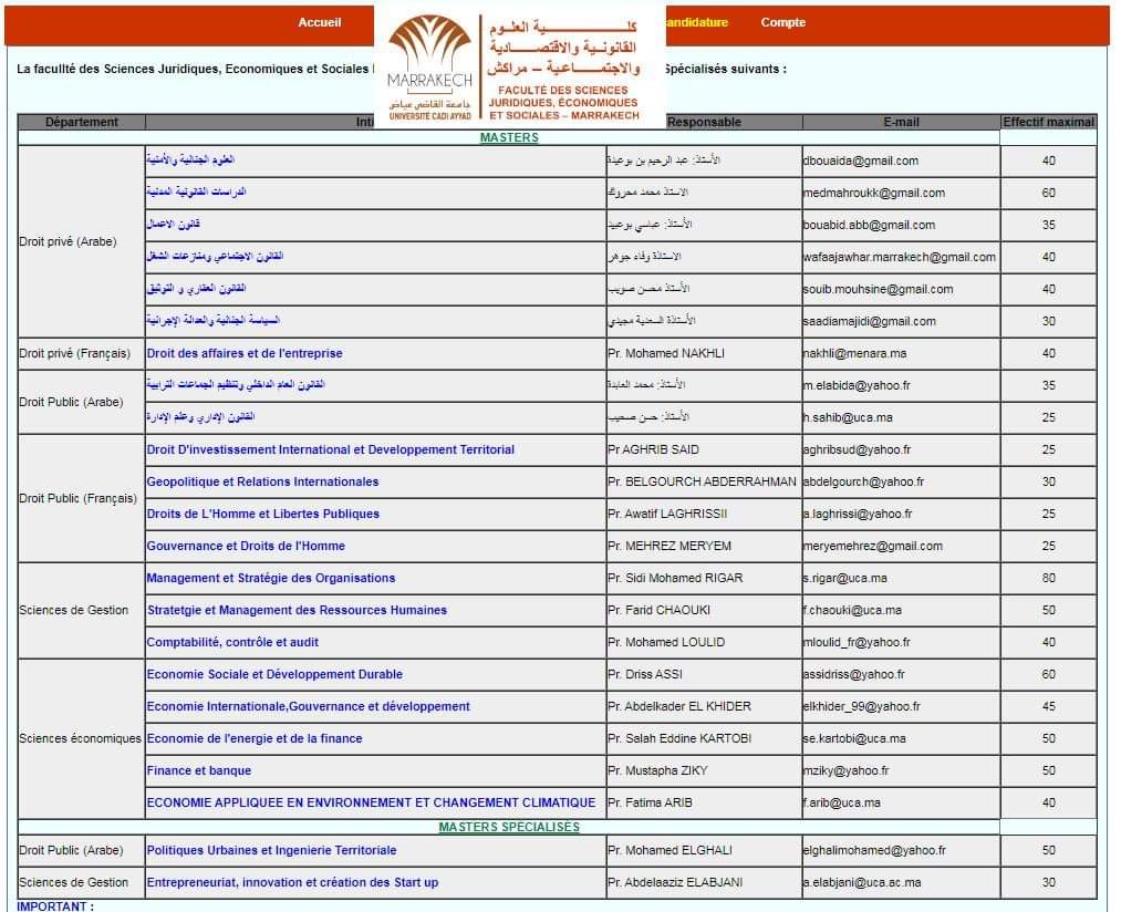 إعلان عن فتح التسجيل القبلي بسلك الماستر و الماستر المتخصص بكلية العلوم القانونية والاقتصادية والاجتماعية مراكش برسم السنة الجامعية 2023-2024