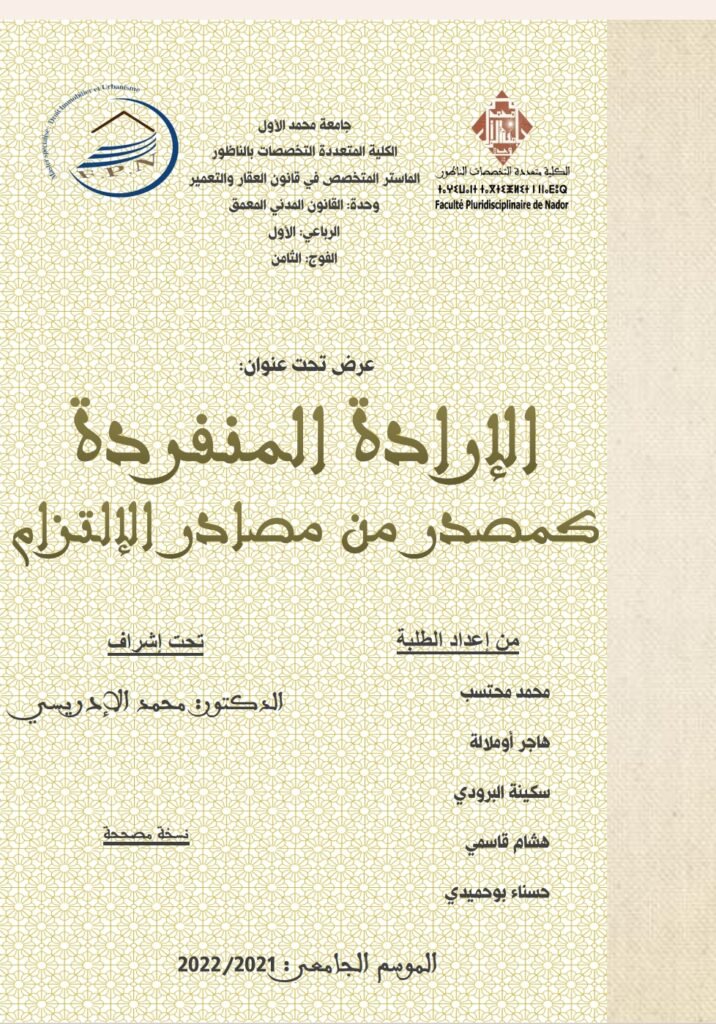 وضعية الإرادة المنفردة في قانون الالتزامات والعقود