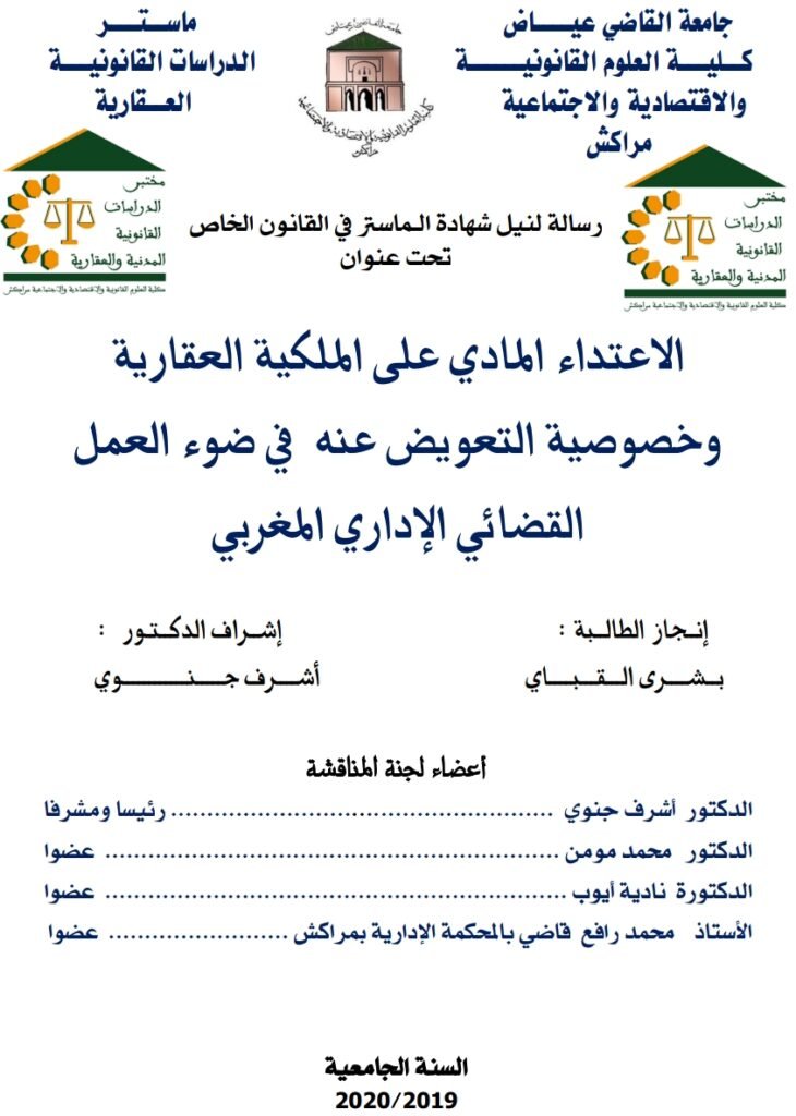 الإعتداء المادي على الملكية العقارية وخصوصية التعويض عنه في ضوء العمل القضائي المغربي