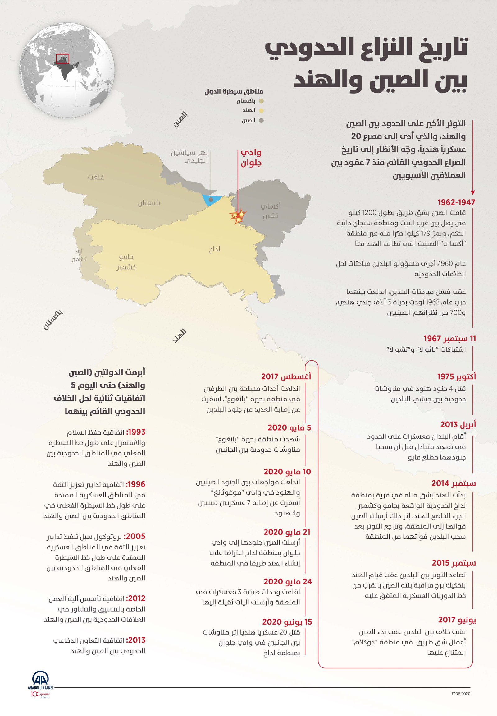 الصينية عام 1962 والتي ظهرت مرة أخرى كنقطة خلاف بين الجانبين ابتداء من مايو 2020.