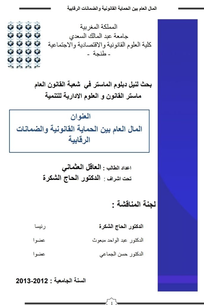 المال العام بالمغرب بين الحماية القانونية والضمانات الرقابية