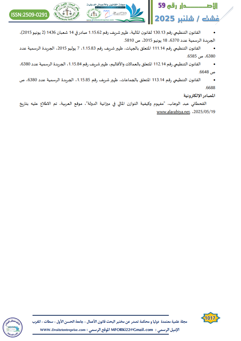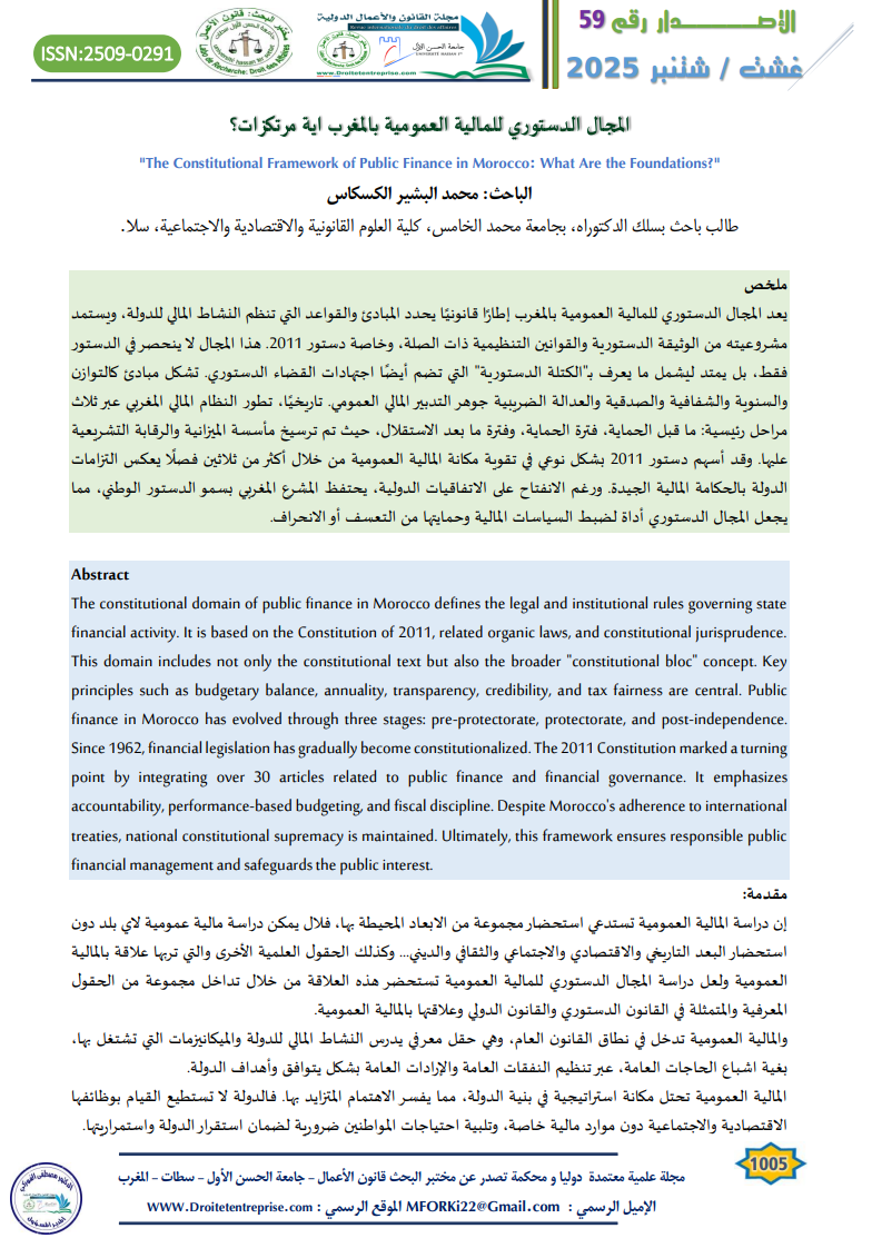 The post المجال الدستوري للمالية العمومية بالمغرب اية مرتكزات؟ الباحث: محمد البشير الكسكاس appeared first on مجلة القانون والأعمال الدولية.