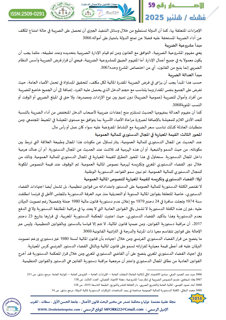 • م. مشروعية الضريبة • م. العدالة الضريبية |