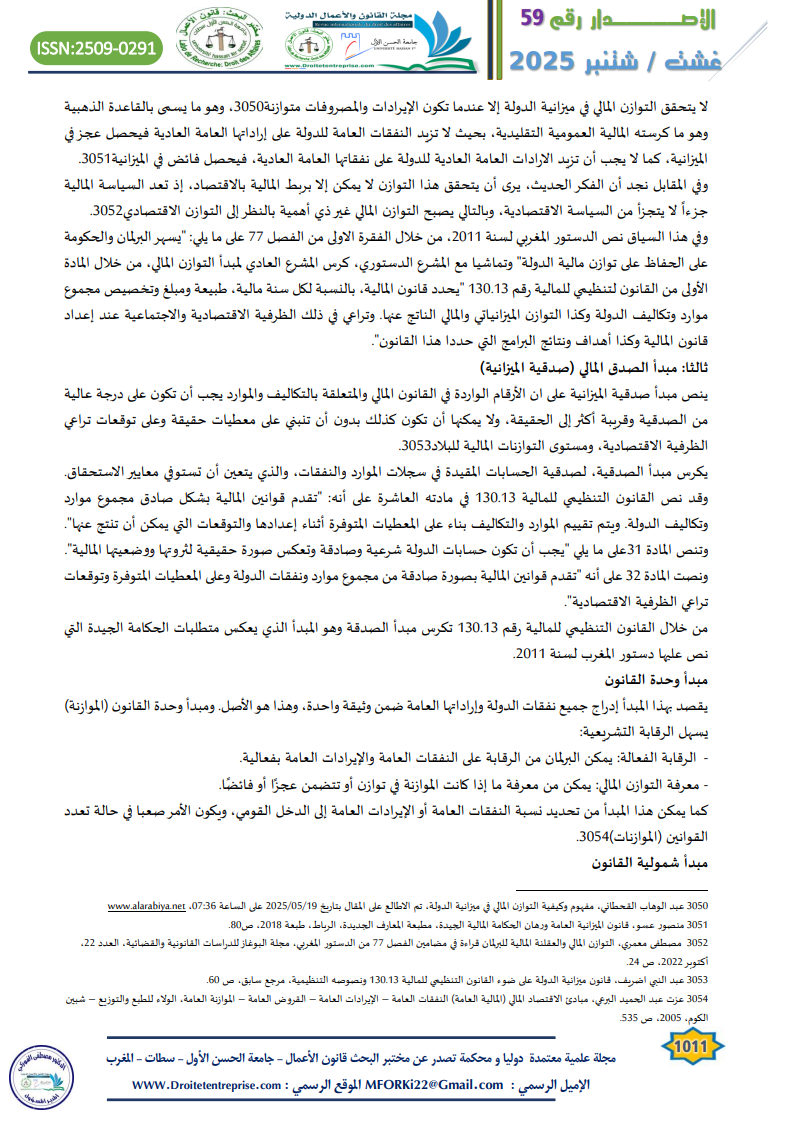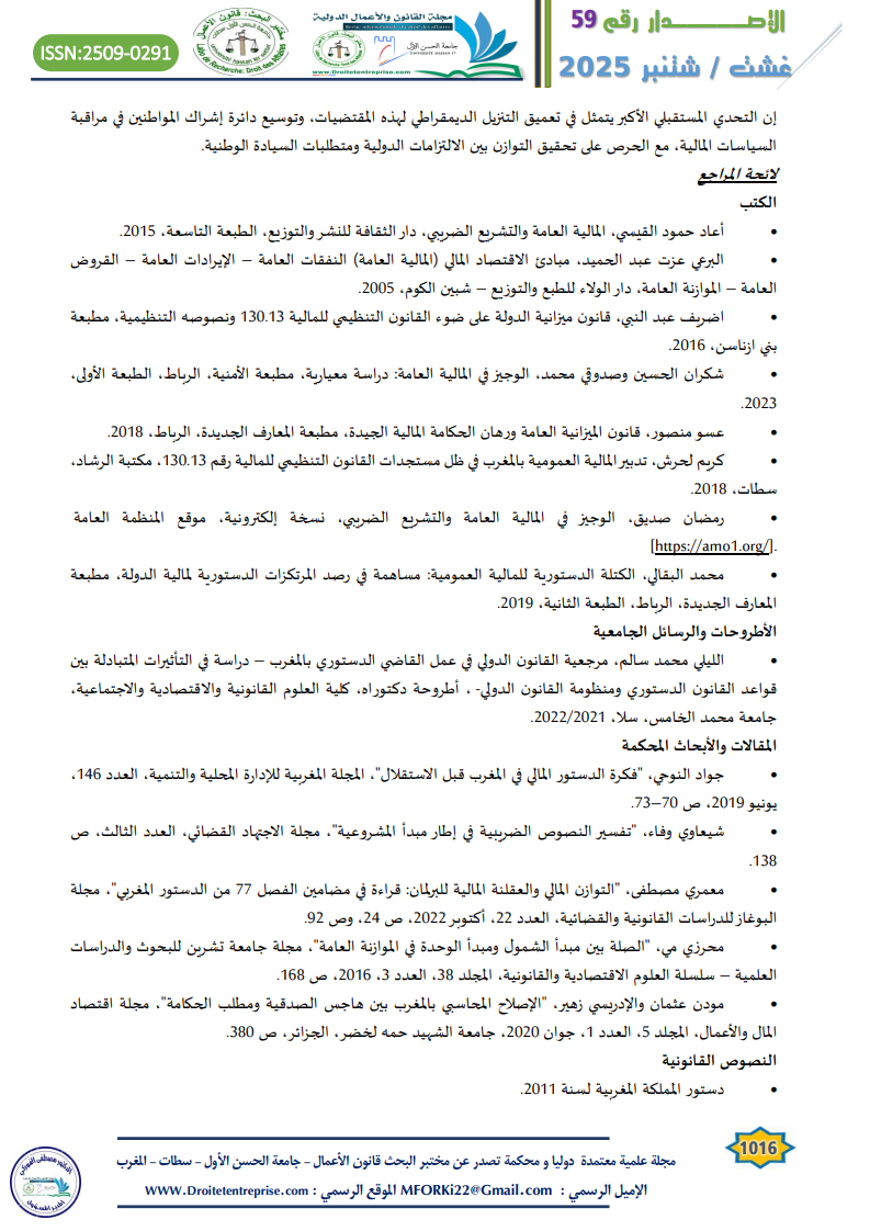 - معمري مصطفى، “التوازن المالي والعقلنة المالية للبرلمان: قراءة في مضامين الفصل 77 من الدستور المغربي”، مجلة البوغاز للدراسات القانونية والقضائية، العدد 22، أكتوبر 2022، ص 24، وص 92.