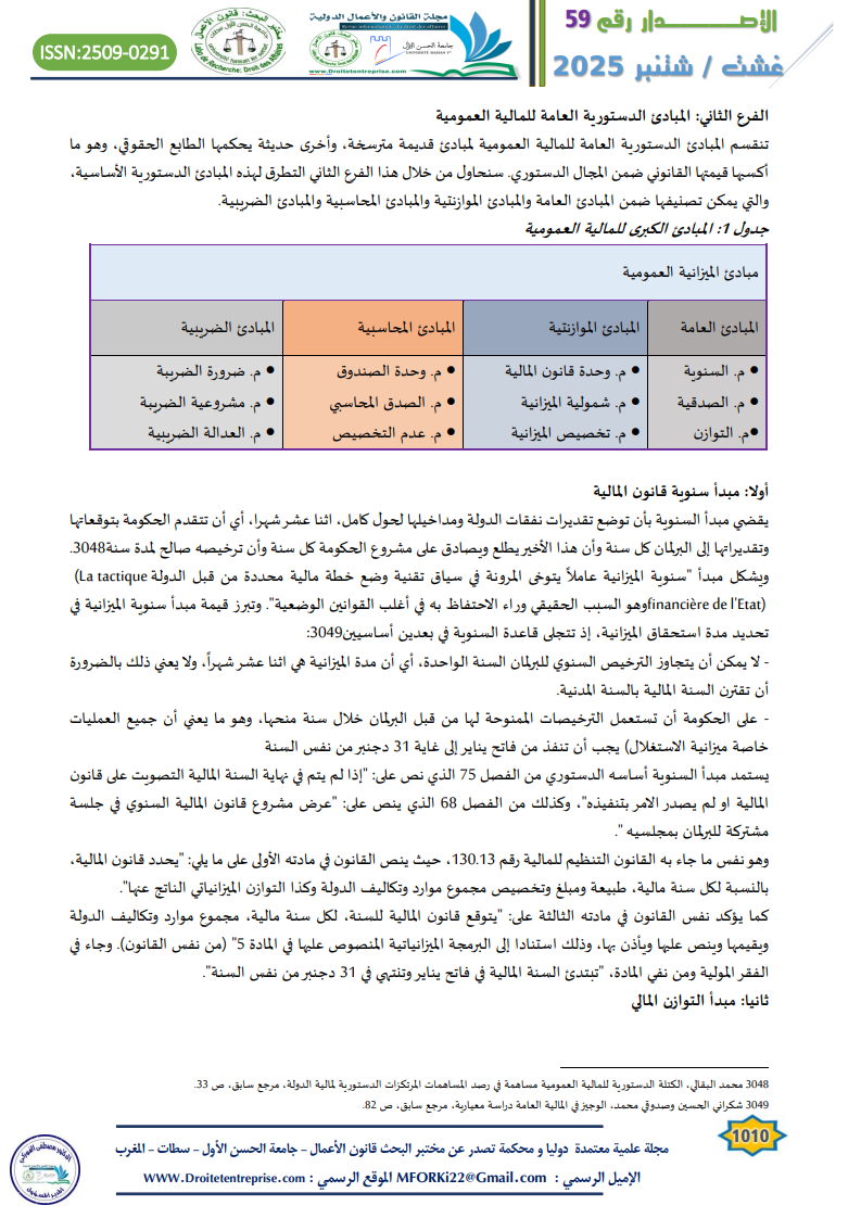 الفرع الثاني: المبادئ الدستورية العامة للمالية العمومية