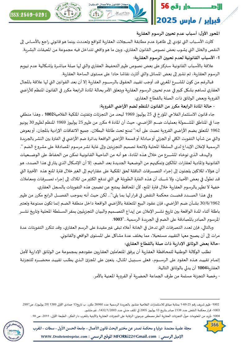 1- الأسباب القانونية لعدم تحيين الرسوم العقارية: