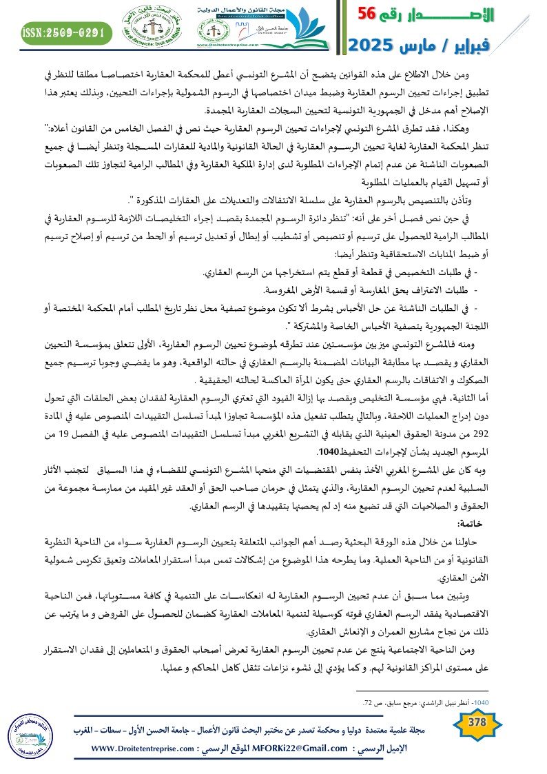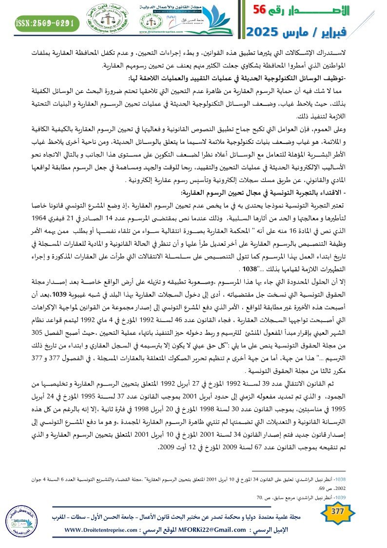 – الاقتداء بالتجربة التونسية في مجال تحيين الرسوم العقارية: