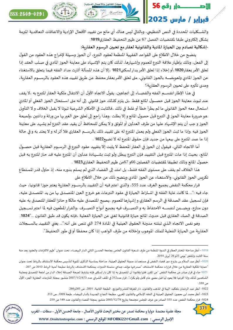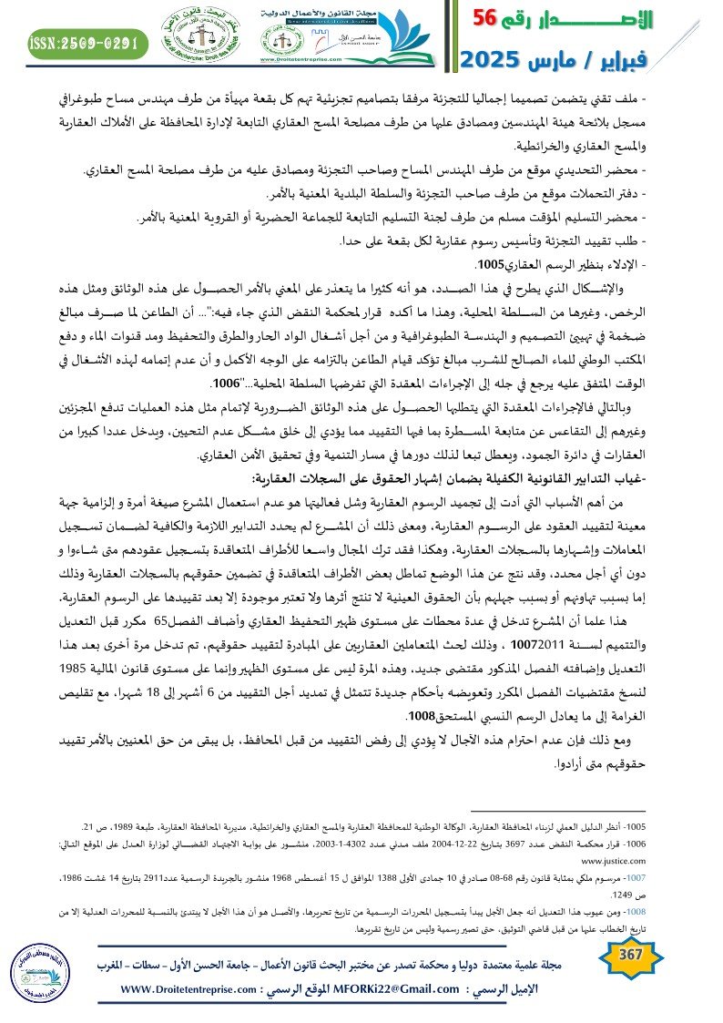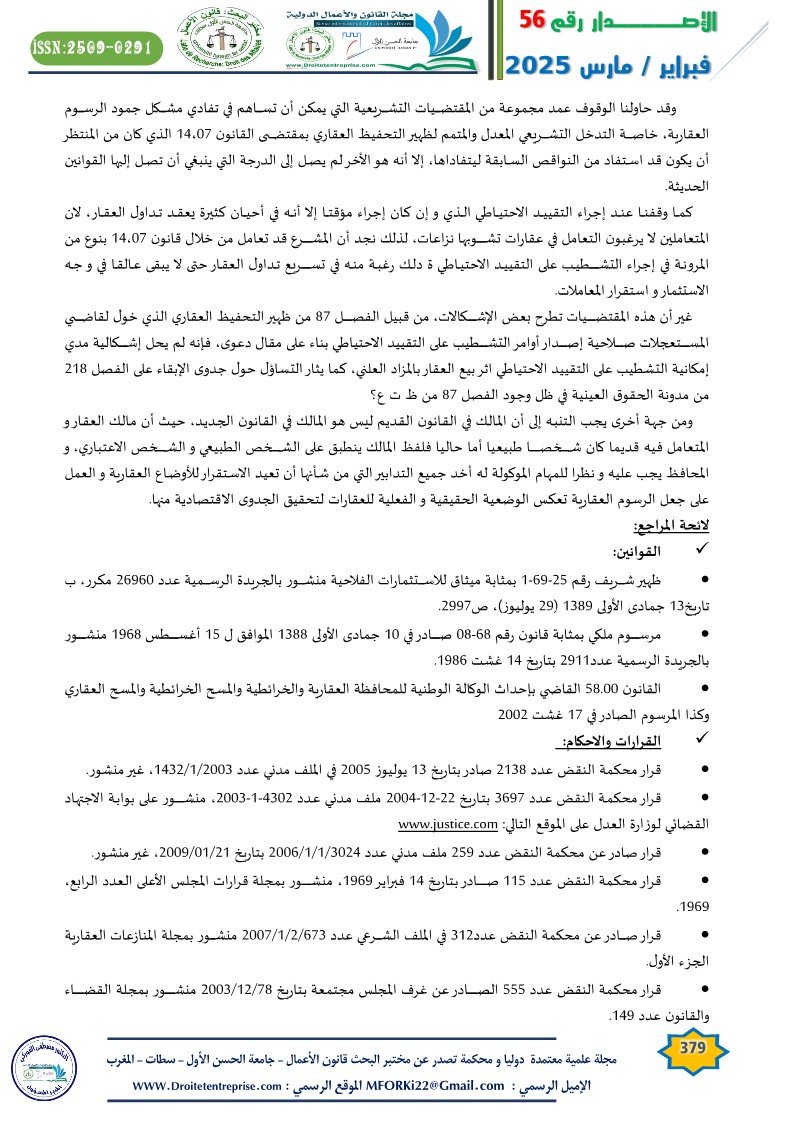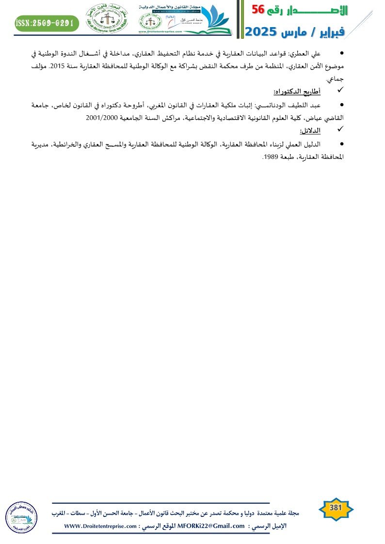 • محمد خيري: واقع وأفاق نظام التحفيظ العقاري، مقال منشور بمجلة الأملاك، المطبعة والوراقة الوطنية، مراكش العدد الرابع، سنة 2010،