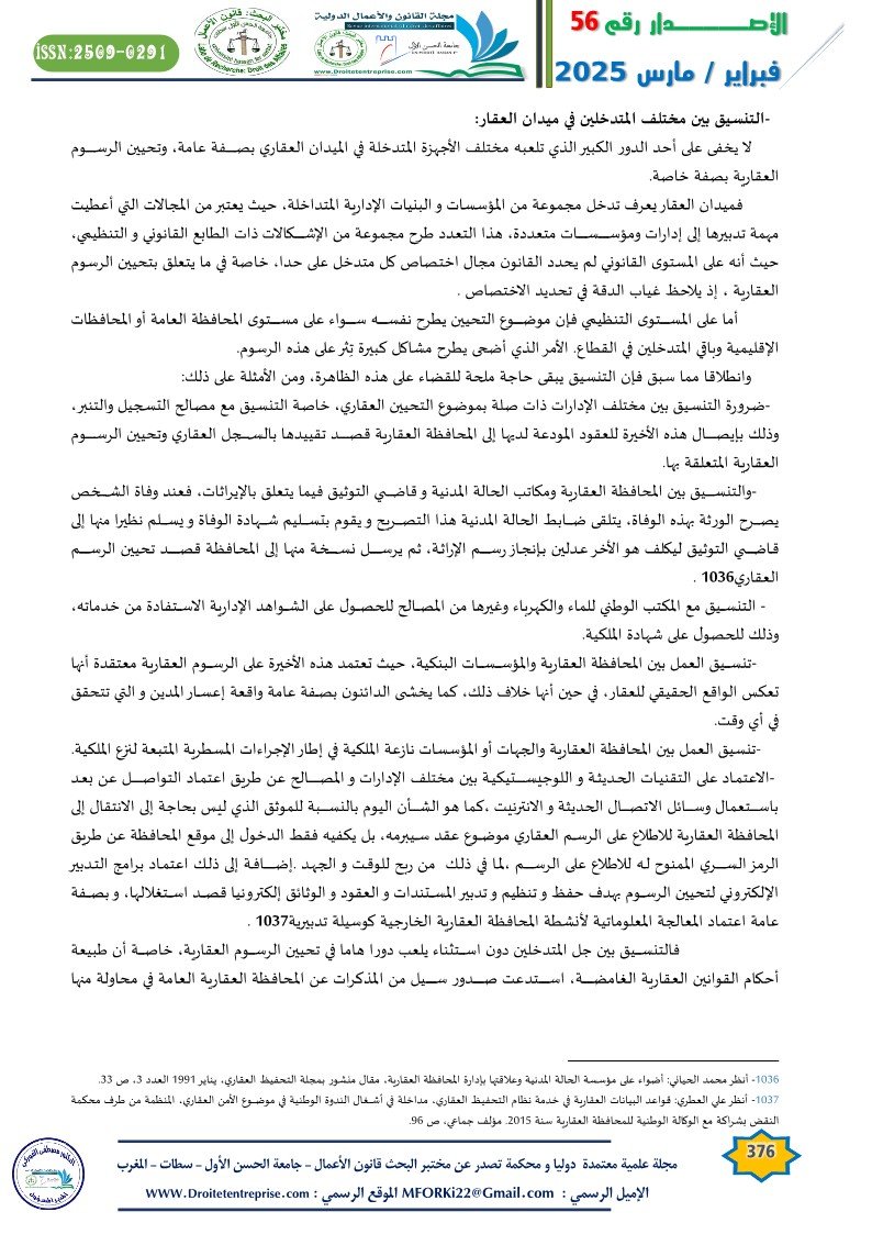 -التنسيق بين مختلف المتدخلين في ميدان العقار: