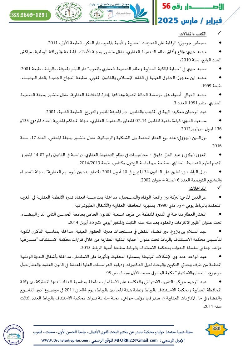 • محمد خيري في “حماية الملكية العقارية ونظام التحفيظ العقاري بالمغرب” دار النشر المعرفة، بالرباط، طبعة 2001.