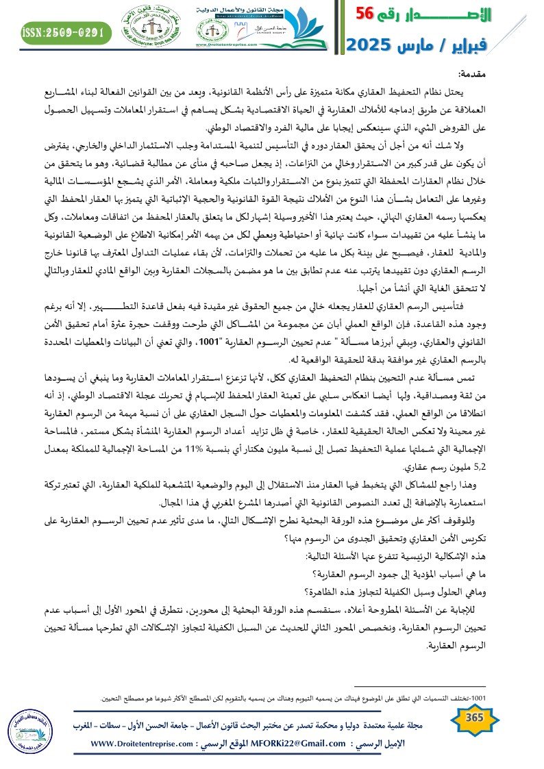 تيويم الرسوم العقارية بين متطلبات القانون وغاية تحقيق الأمن العقاري الباحثة : صارة افضيل