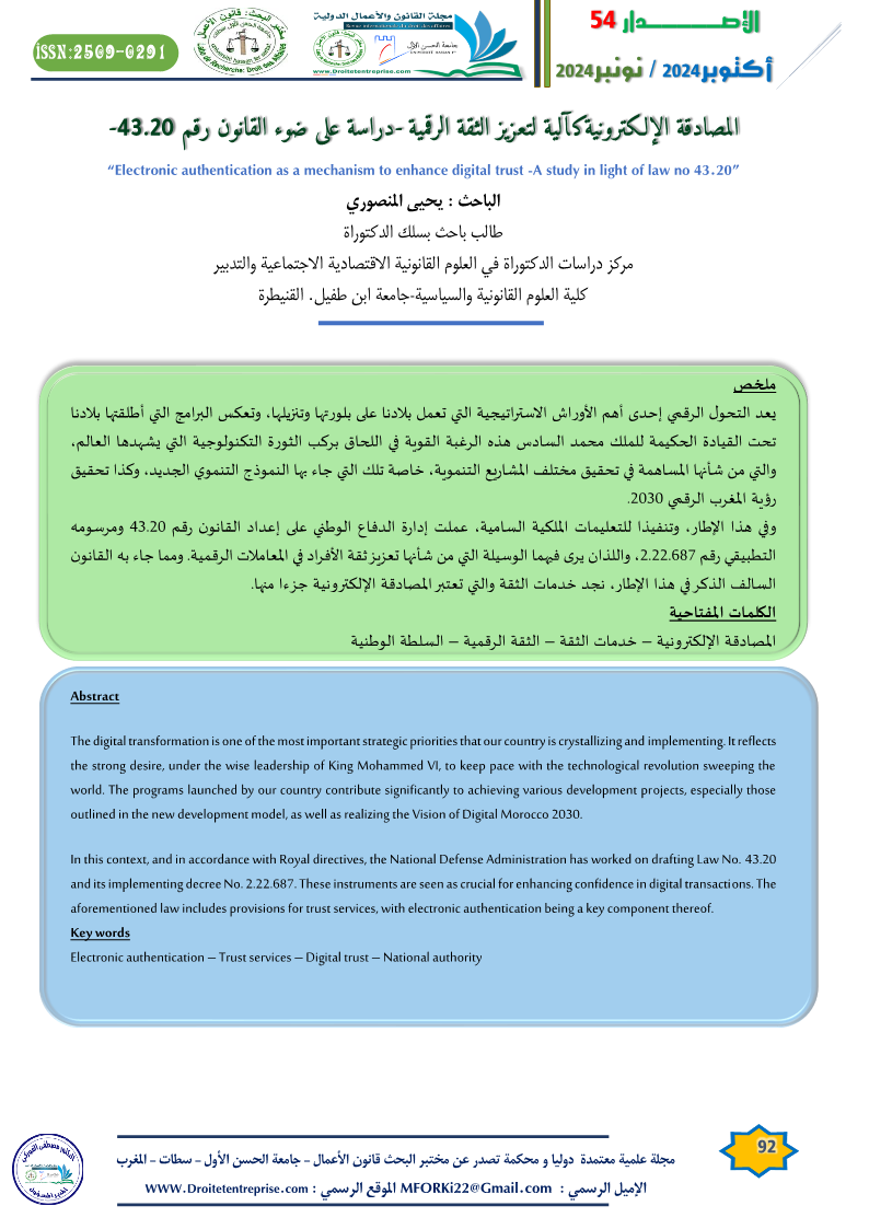 هذا البحث منشور في مجلة القانون والأعمال الدولية الإصدار رقم 54 الخاص بشهري أكتوبر نونبر 2024