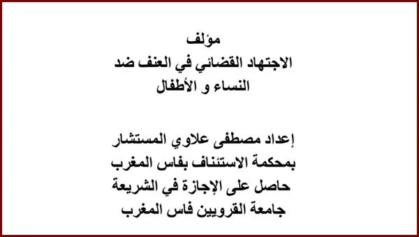 مؤلف الاجتهاد القضائي المغربي في العنف ضد النساء و الأطفال اعداد : مصطفى علاوي حاصل على دبلوم المعهد العالي للقضاء حاصل على الإجازة في الشريعة جامعة القرويين فـــــــاس المغرب المستشار بمحكمة الإستئناف بفاس المغرب له العديد من المؤلفات رابط التحميل بصيغة PDF _____________ __GDRIVE_LABEL__ أخر المواضيع من قسم : اجتهادات قضائية تعليقات